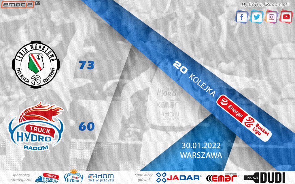Legia Warszawa – HydroTruck Radom 73:60 (22:12, 19:15, 17:17, 15:16)